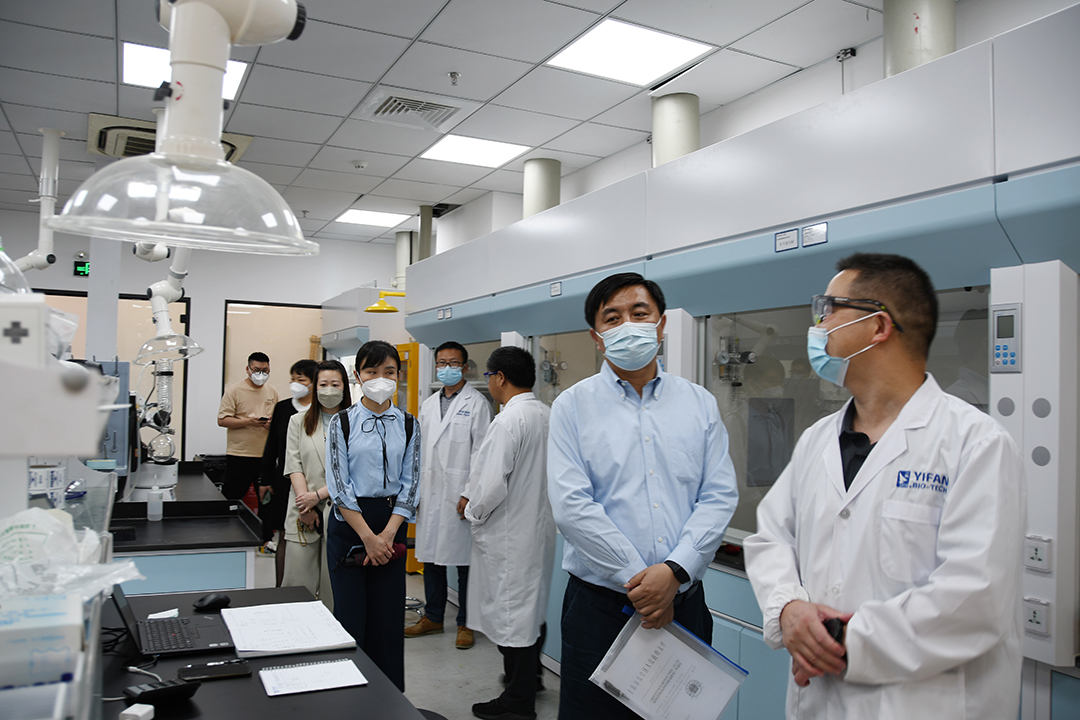 本次负责接待的有上海农帆生物科技有限公司的总经理吴海琴女士和副总经理贾俊超先生,以及研发中心王攀登副主任。王副主任带领领导们视察了实验室,详细介绍了我们的研发仪器设备,赵书记非常关心和关注实验的环保设施与措施,以及三废仓库和三废处理的情况,看到我们完善齐全的相关配套措施,给予了很大的认可。