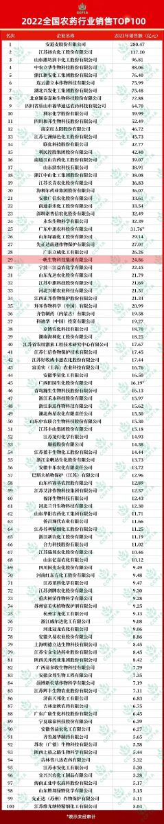 附2022全国农药行业销售TOP100完整表单如下: