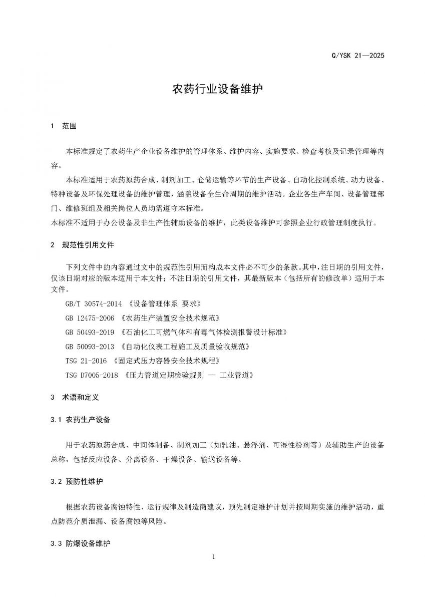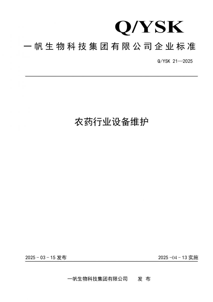 《农药行业设备维护》| 德信平台企业标准公示