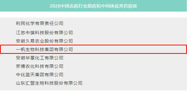 YIFAN wins the 2020 Excellent Technicals and Intermediates Suppliers of Chinese Pesticide Industry |
